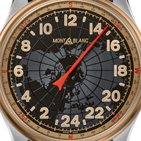 The Montblanc 1858 product line is inspired by the legendary professional Minerva watches from the 1920s and 1930s, which were conceived for military use and exploration. Reinterpreting these legendary timepieces, the Montblanc 1858 product line expresses the spirit of mountain exploration, embodying the modern trend of returning to nature. The Montblanc 1858 Automatic 24H is highly functional and dedicated to the modern-day explorer. It indicates the time on a 24-hour scale using a single red-colored hand coated in SuperLumiNova®, which not only indicates the time, but also acts as a compass. The timepiece comes in a 42 mm stainless steel case with a bronze bezel and a black dial with beige luminescent numerals and indexes. As a secret detail, the dial features a hidden map of the Northern Hemisphere in SuperLumiNova® that is only revealed at night. The Montblanc 1858 Automatic 24H is completed with a refined black textile strap that is made in a traditional 150-year-old strap manufacture in France.