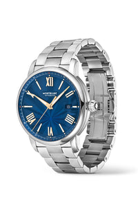 The Montblanc Star Legacy Automatic Date Limited Edition of 800 pieces is adorned with a blue dial featuring Montblanc’s signature exploding star pattern, and rose gold-coated sword-shaped hands and numerals. It is powered by the MB 24.17 automatic movement that indicates the hours, minutes, seconds, and date. In terms of design, the timepiece has been inspired by Minerva pocket watches from the late 19th and early 20th century with their round, polished, pebble-shaped cases and onion-shaped crowns. This timepiece is also fitted with an interchangeable stainless steel bracelet.