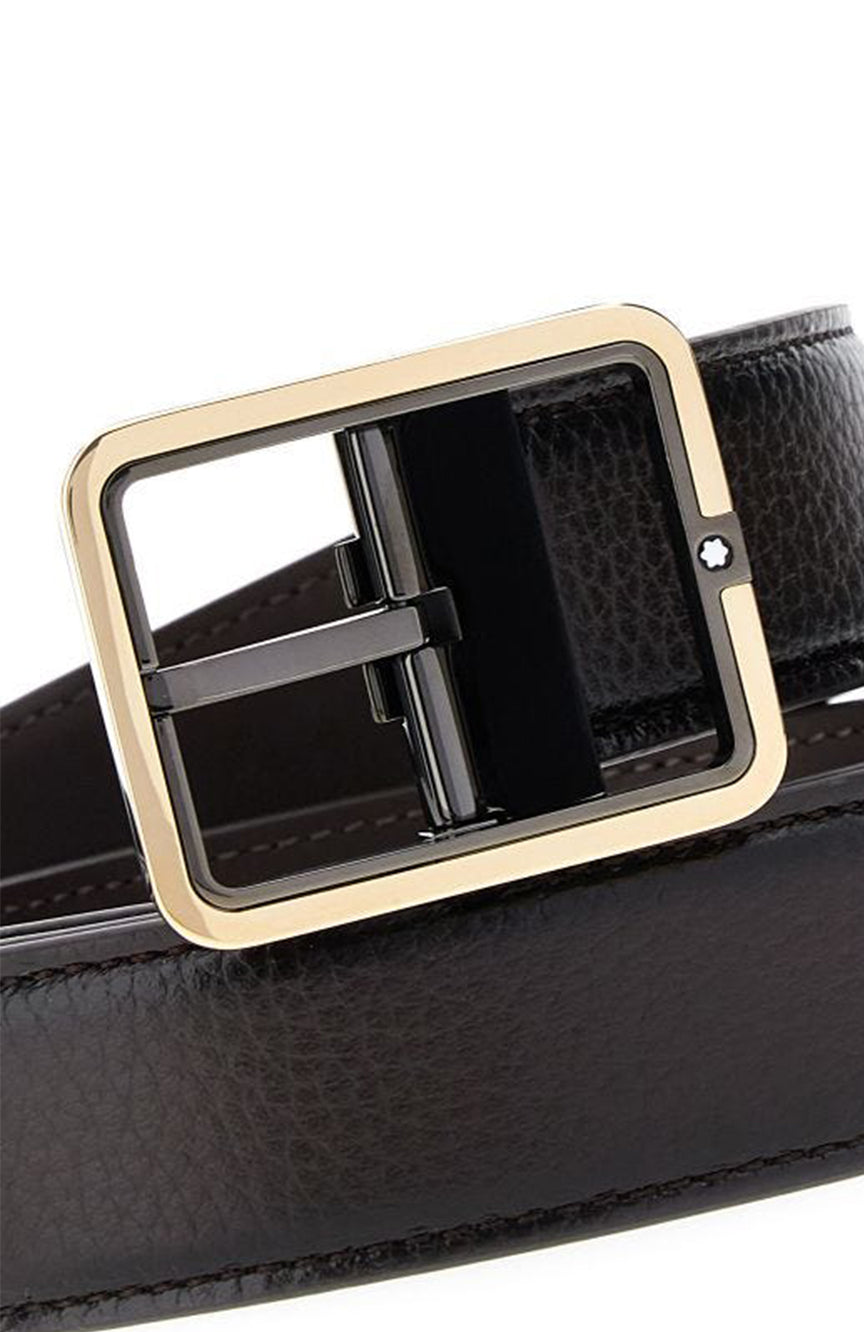 A slick and contemporay buckle accompanies a classic leather band on this belt, with a two tone effect complimented by the signature Montblanc emblem.