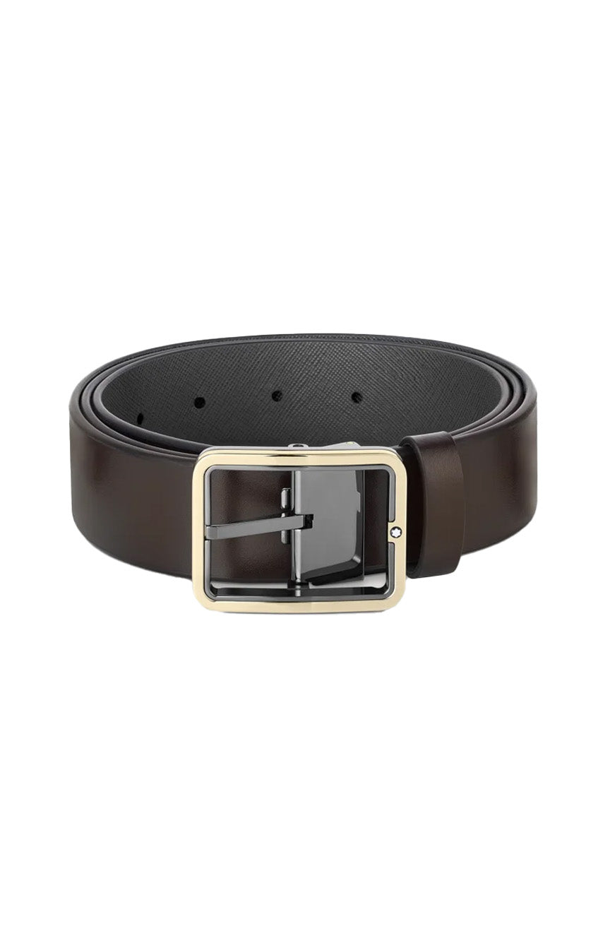 A slick and contemporay buckle accomanies a classic leather band on this belt, with a two tone effect complimented by the signature Montblanc emblem. The self-adjustable strap is designed with a different colour on each side, making for reversible styling options.