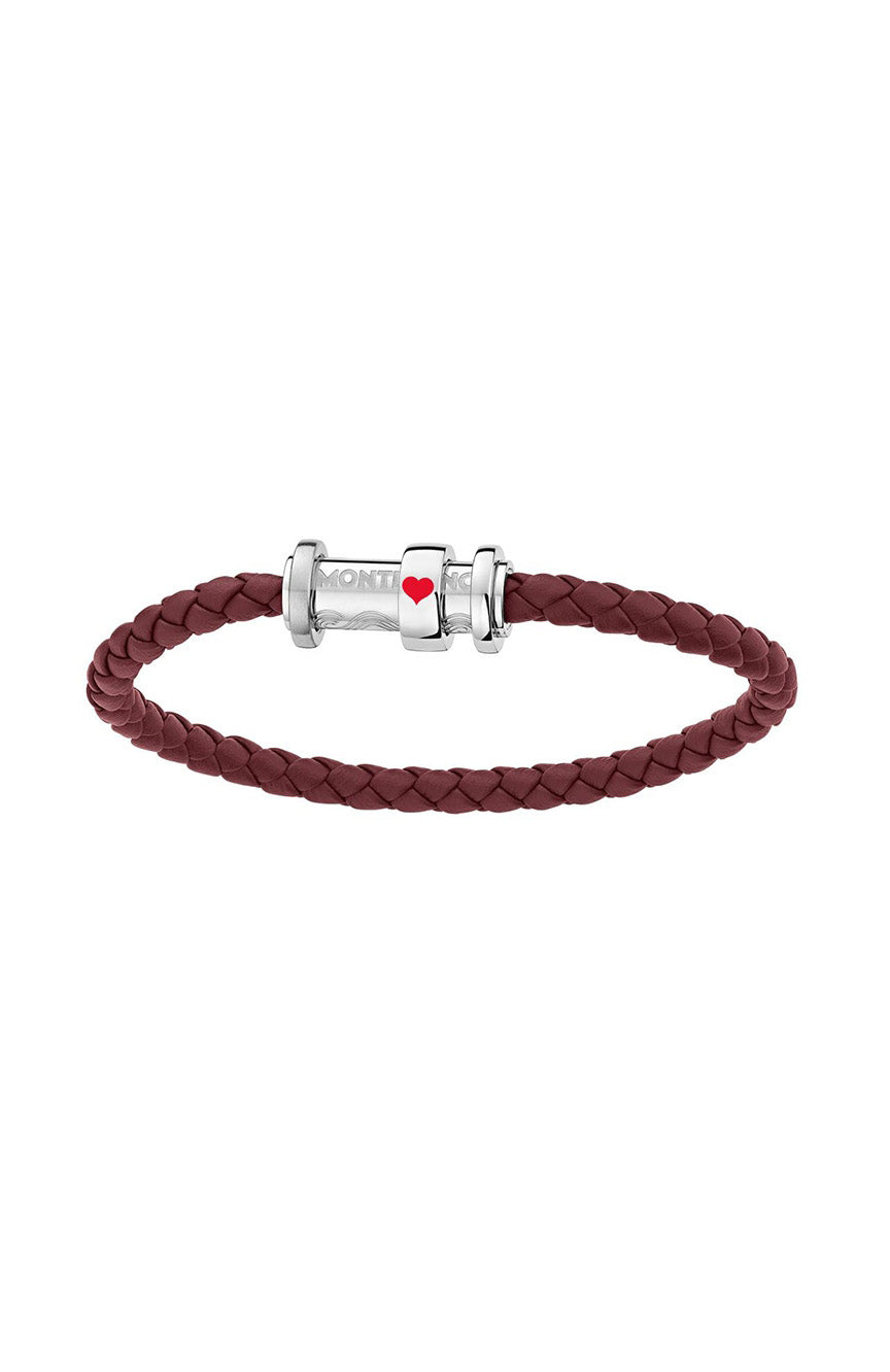 The Montblanc Meisterstuck bracelet is a tribute to the book Around the World in 80 Days. Made in woven red leather, the piece features a polished stainless steel closure with an embossed ace of hearts symbol, inspired by one of the key elements of the novel, playing card suits.