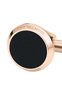 The Montblanc Meisterstuck cufflinks celebrate timeless style. The timeless round shape in stainless steel with a rose gold-coloured PVD finish and onyx inlay creates a piece with a powerful Montblanc signature.