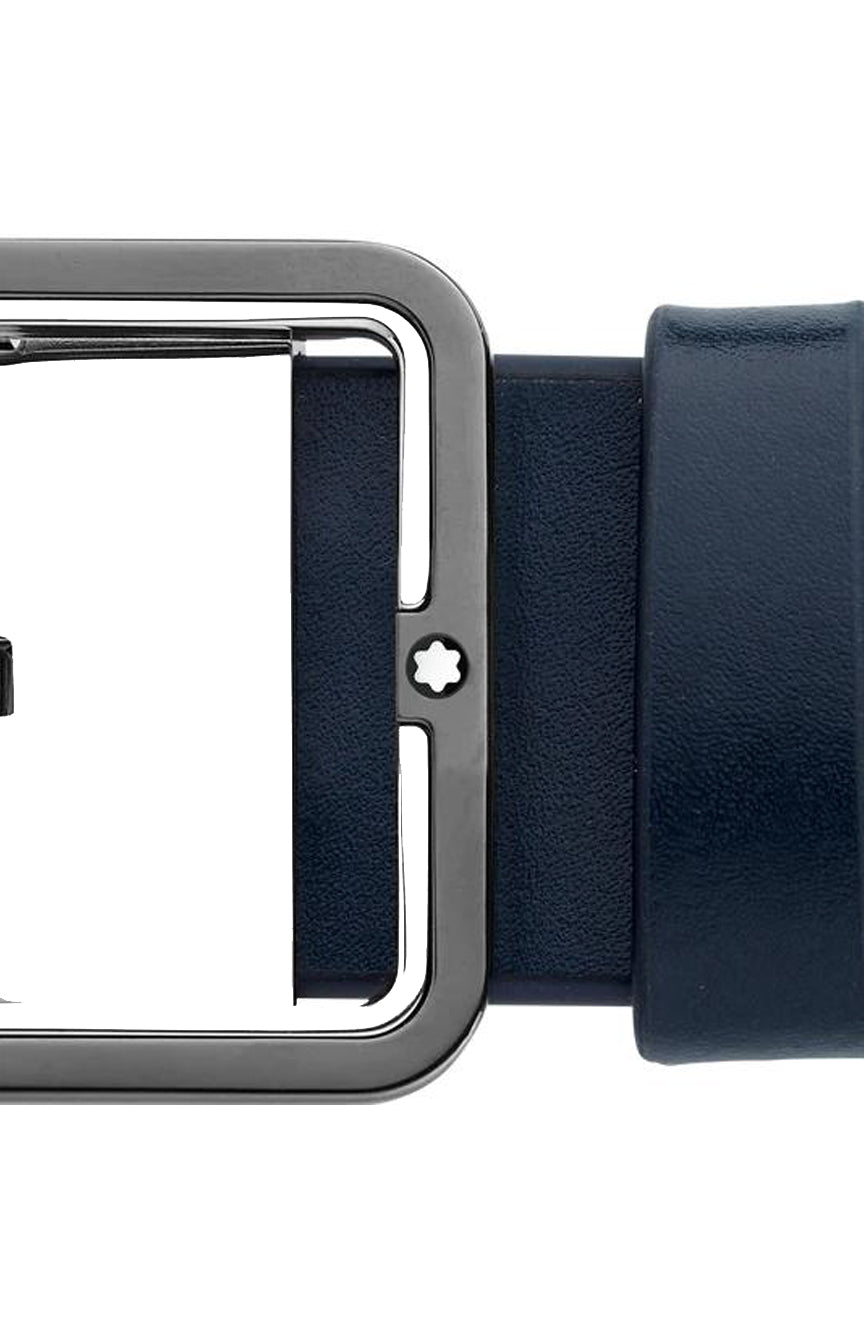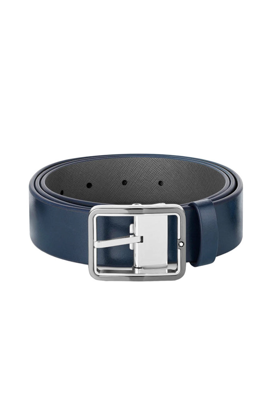 حزام جلدي قابل للعكس من مونت بلانك أزرق/رمادي مقاس 35 مم