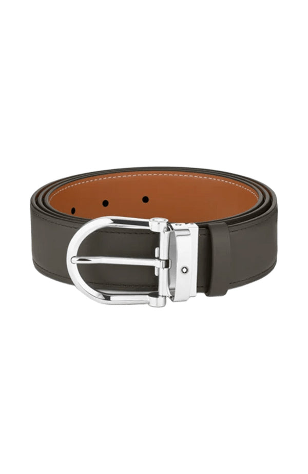 حزام جلدي قابل للعكس من Montblanc Horseshoe بإبزيم أسود/بني مقاس 35 مم
