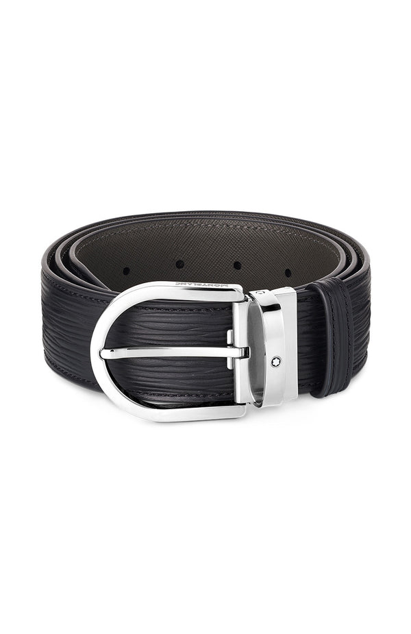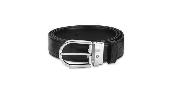 حزام جلدي أسود مطبوع عليه مشبك حدوة الحصان من مونت بلانك مقاس 40 مم