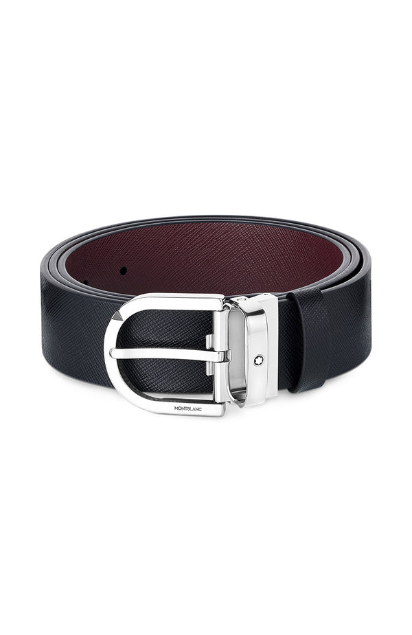حزام جلدي قابل للعكس من Montblanc بطباعة مشبك حدوة الحصان باللون الأسود/mosto مقاس 35 مم