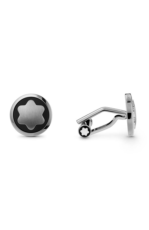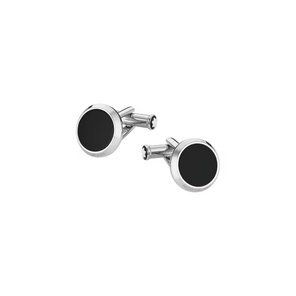 أزرار أكمام مونت بلانك، ستانلس ستيل، عقيق أسود
