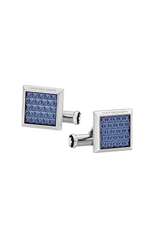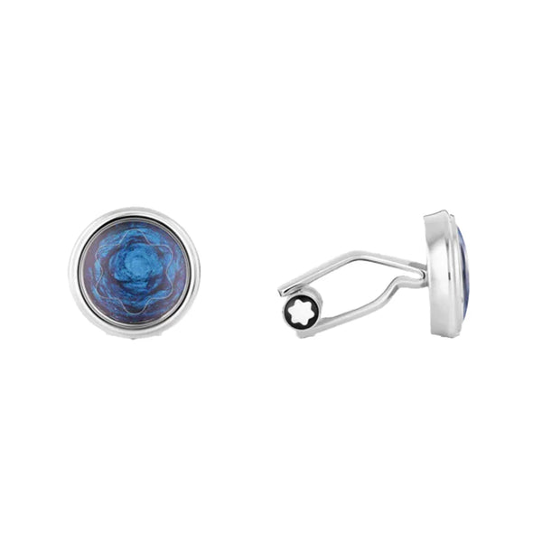 أزرار أكمام مونت بلانك من الفولاذ والألومنيوم باللون الأزرق