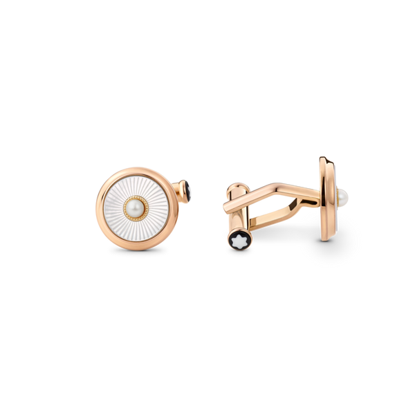 أزرار أكمام مونت بلانك دائرية من الفولاذ باللون الوردي الذهبي PVD
