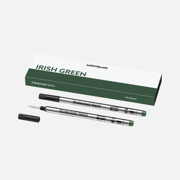 عبوات إعادة تعبئة أقلام Montblanc Rollerball باللون الأخضر الأيرلندي. مناسبة لجميع أقلام Montblanc Rollerball أو Fineliner باستثناء أقلام Meisterstuck LeGrand وMontblanc M وHeritage collection بدون غطاء. - وحدة التعبئة - 2 - نوع إعادة التعبئة - متوسط