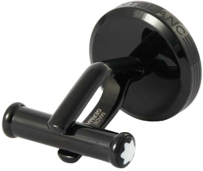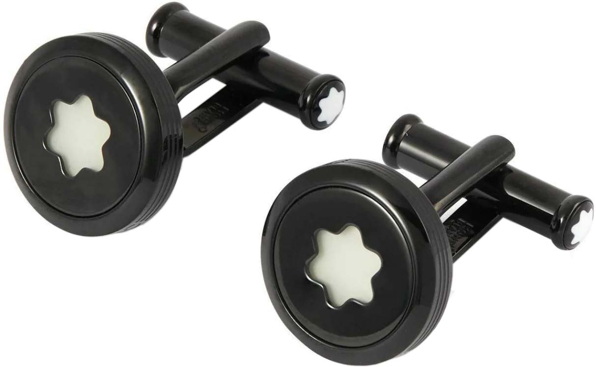 أزرار أكمام من الفولاذ المقاوم للصدأ مع طلاء PVD أسود. شعار مونت بلانك مطلي بطلاء ضوئي.
