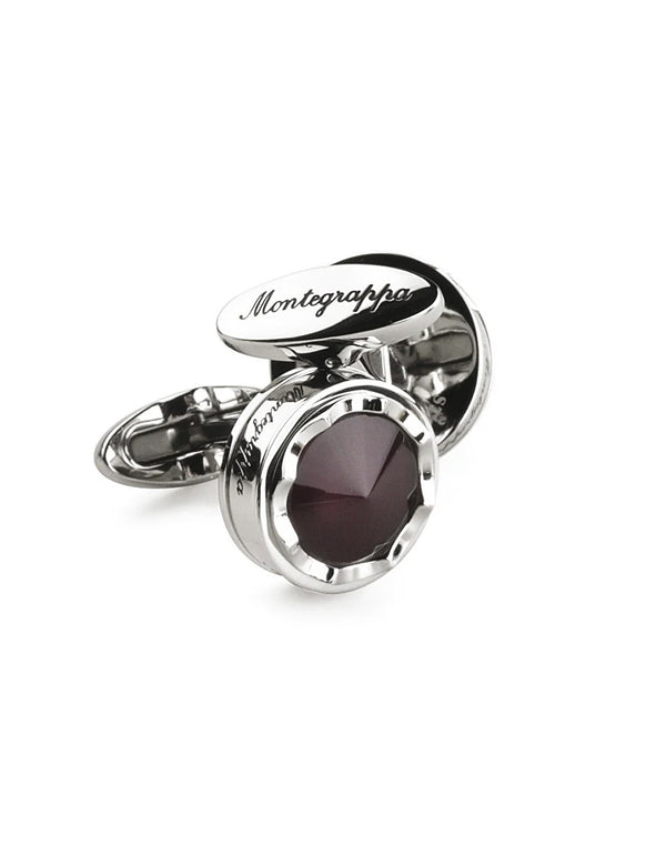Montegrappa Parola Cufflinks, Steel, Purple Glass