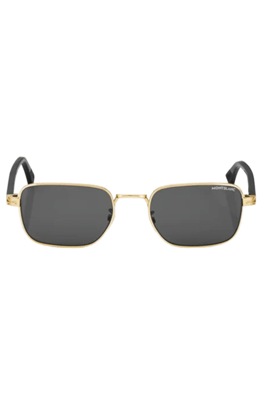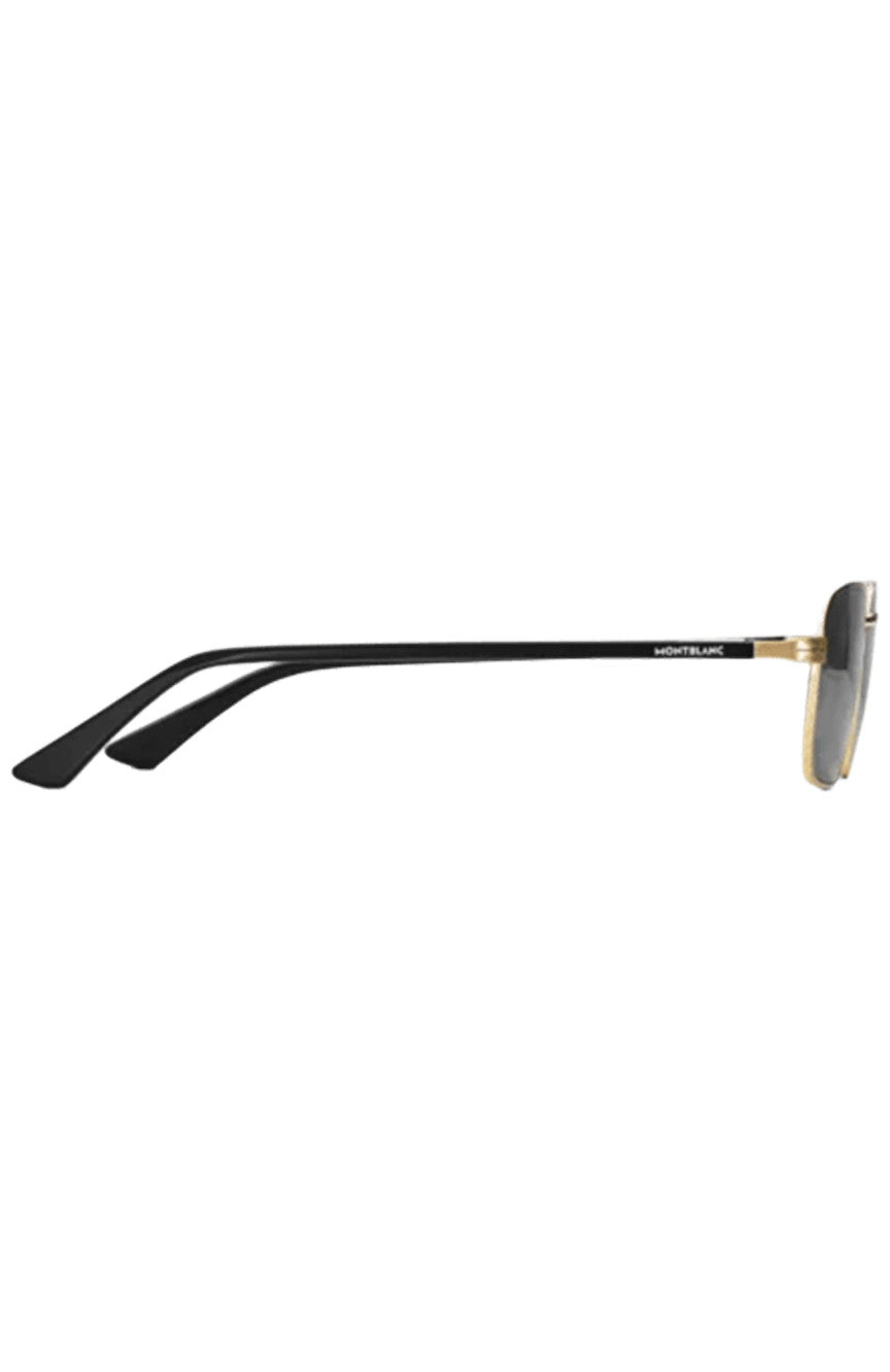 تتميز هذه النظارات الشمسية ذات الشكل المستطيل بإطار معدني باللون الذهبي وعدسات رمادية. مستوحاة من تصميم طرف القلم لأدوات الكتابة، تتميز تفاصيل طرف القلم المزخرفة بتصميم الذراع المصنوع من الأسيتات. شعار مونت بلانك محفور بالليزر على العدسة اليسرى والنمط المضاد للانزلاق محفور بالليزر على الجانب الداخلي لأطراف الذراع لزيادة الراحة.