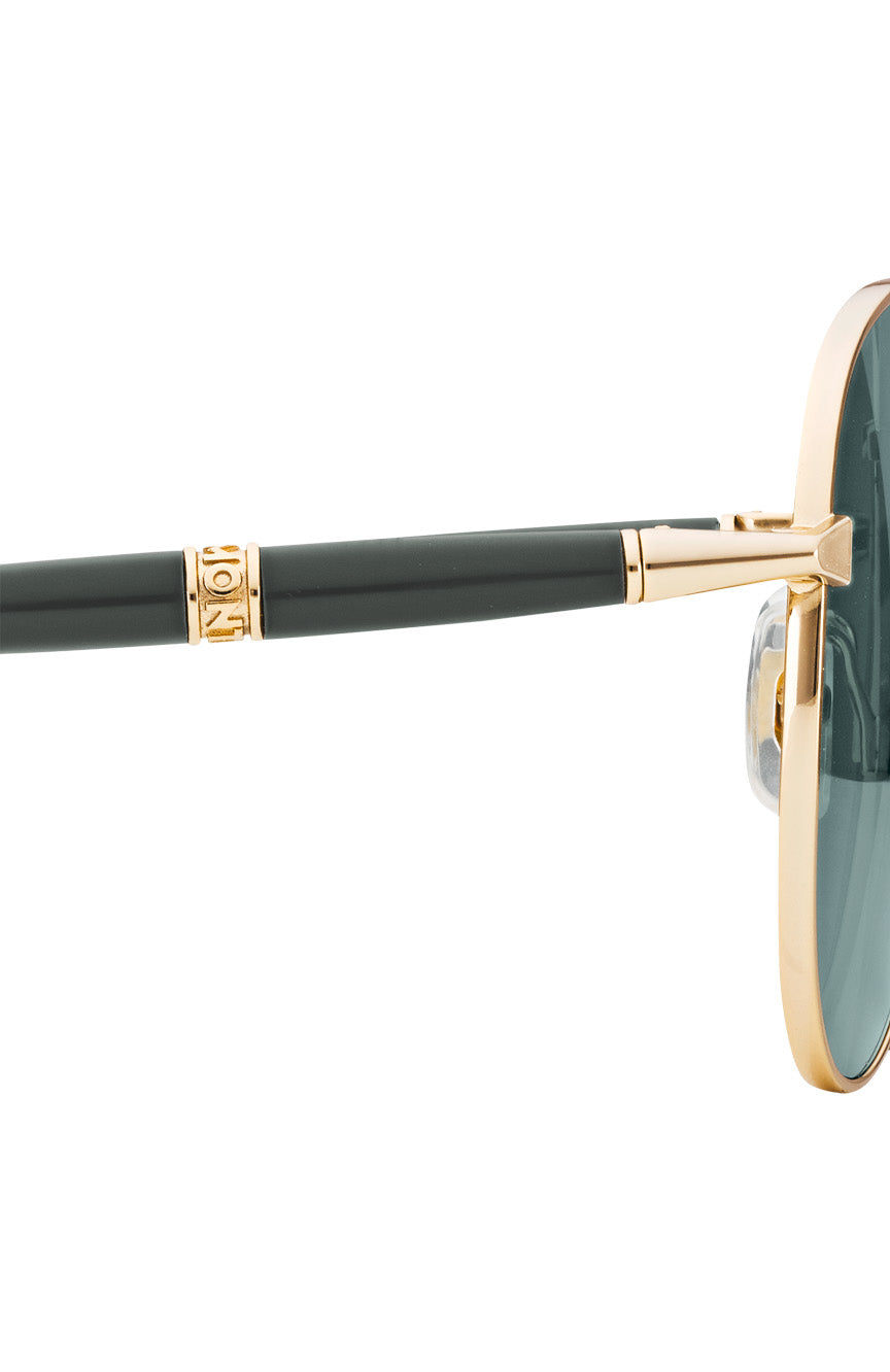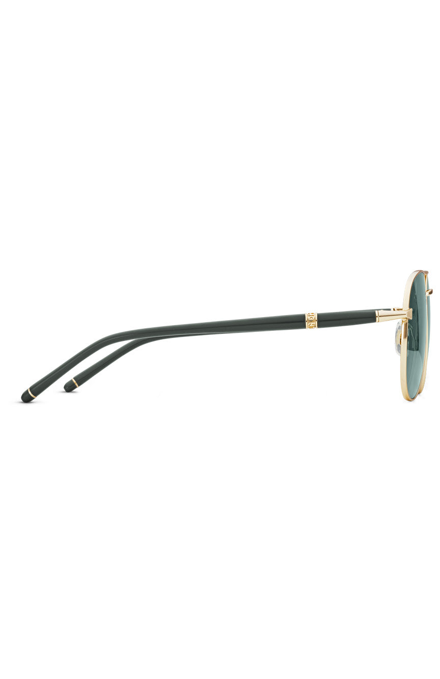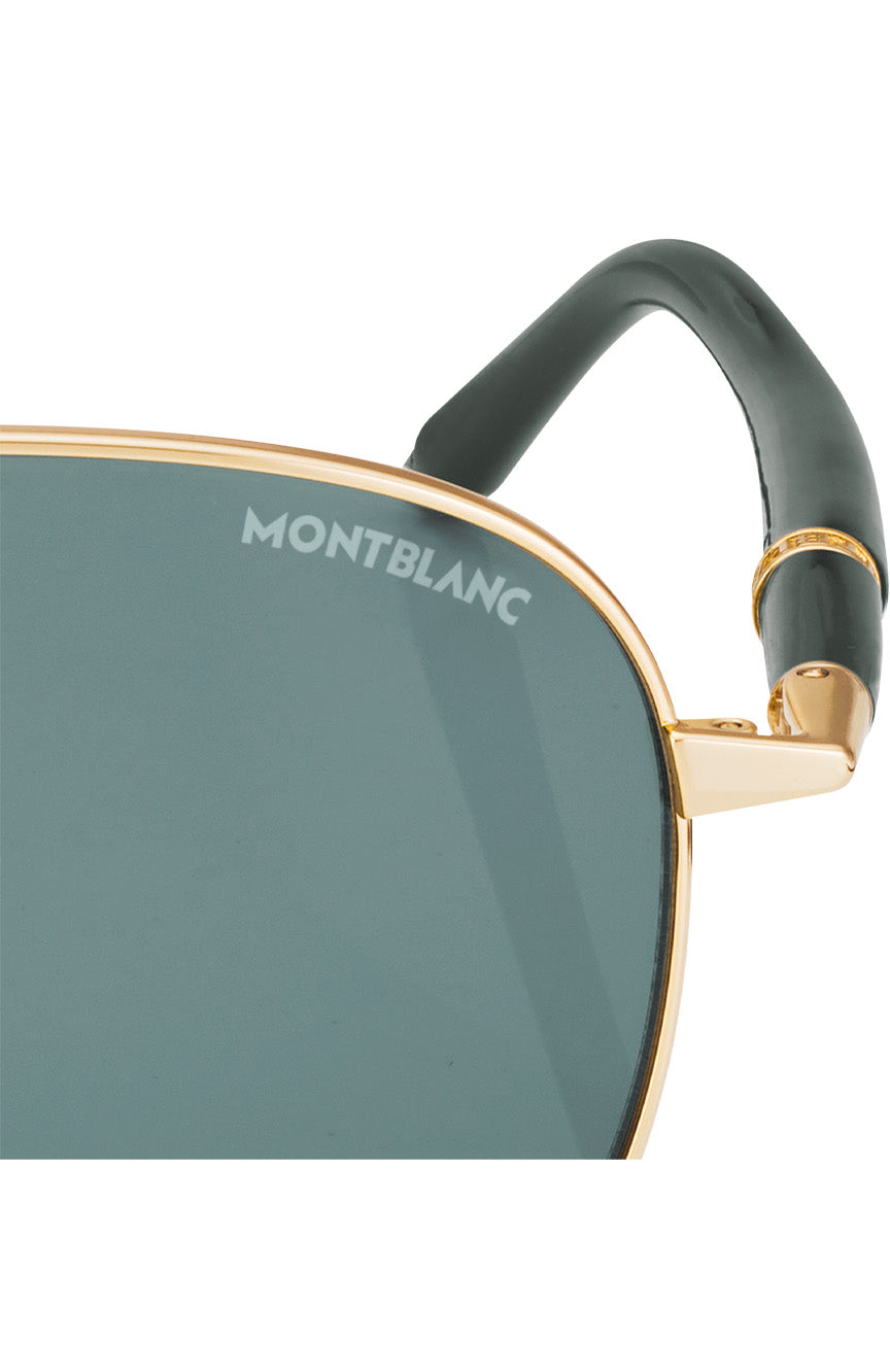 تتميز هذه النظارات الشمسية ذات التصميم المربع بإطار معدني باللون الذهبي وعدسات خضراء. كما تتميز بجسر معدني مزدوج في المقدمة. ويتميز الذراع الأنبوبي المستوحى من أدوات الكتابة مايسترستوك بتفاصيل ثلاث حلقات. كما تم نقش شعار مون بلان بالليزر على العدسة اليسرى وتم تغليف تفاصيل المينا السوداء على أطراف النظارة.