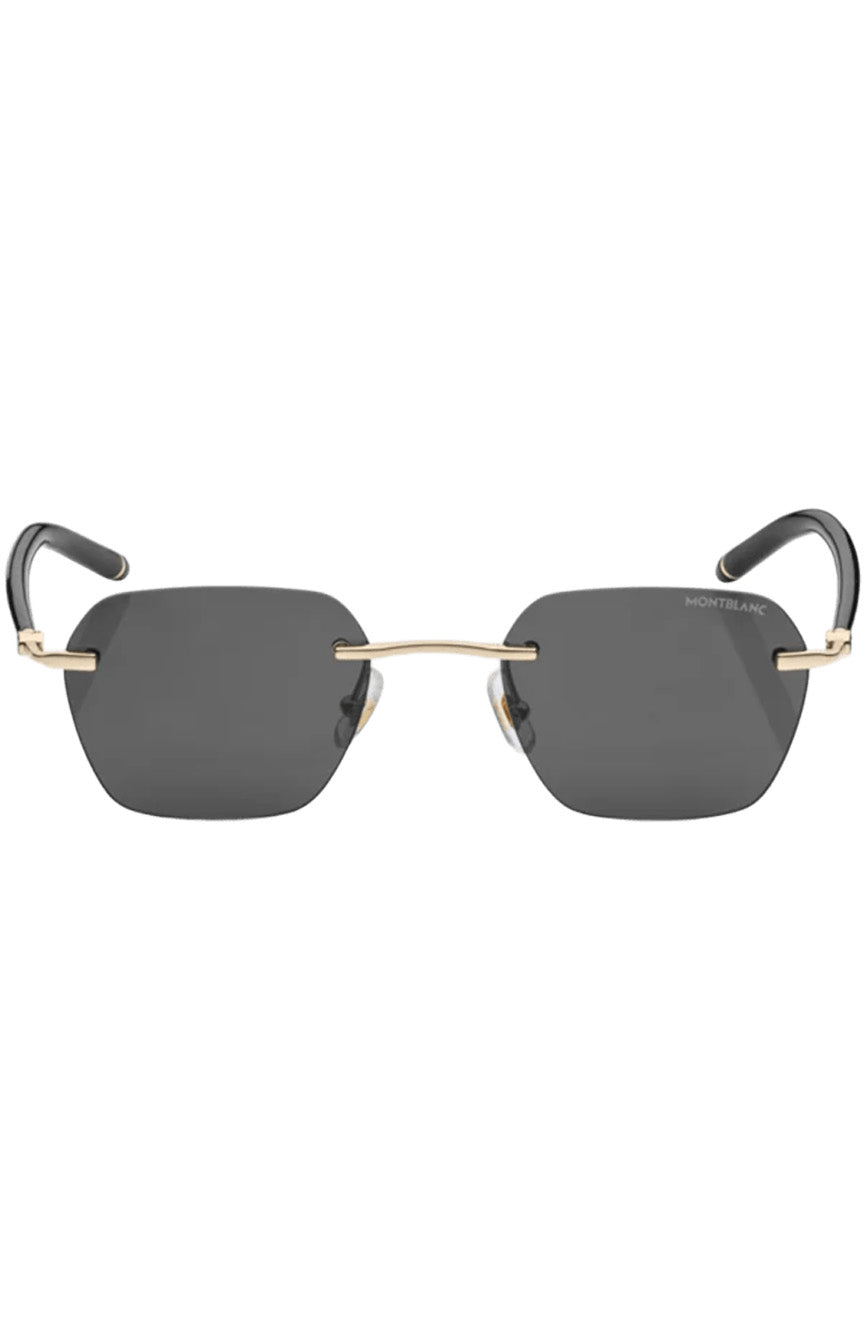 تتميز هذه النظارات الشمسية خفيفة الوزن بدون إطار بتصميم مربع بإطار معدني باللون الذهبي وعدسات رمادية. يتميز الذراع الأنبوبي المستوحى من أدوات الكتابة Meisterstück بتفاصيل ثلاث حلقات. شعار Montblanc محفور بالليزر على العدسة اليسرى وشعار Snowcap محفور على الذراع. تم نقش النمط المضاد للانزلاق بالليزر على الجانب الداخلي لأطراف الذراع لزيادة الراحة.